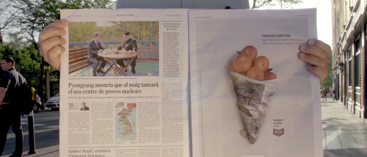 To promote their fresh products, Spanish supermarket chain Aldi run print ads ‘in real time’ featuring their fresh produce wrapped on the paper from the same newspaper they appeared on. Great media idea to entice shoppers and make them rediscover a category they were not aware of.
