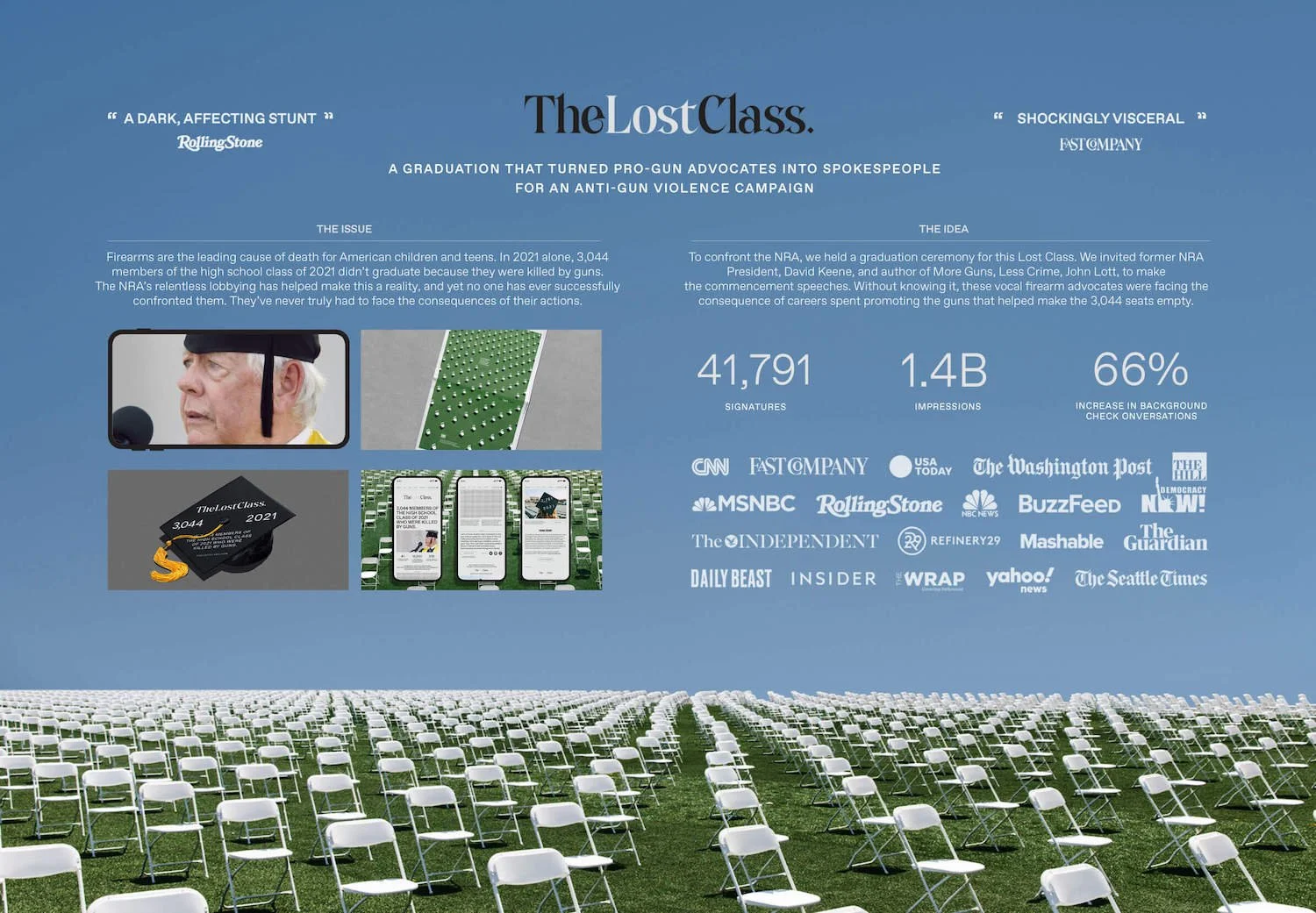 A poignant stunt that tricked pro-gun public figures to become anti-gun spokespeople. Remarkable impact for a worthy cause.